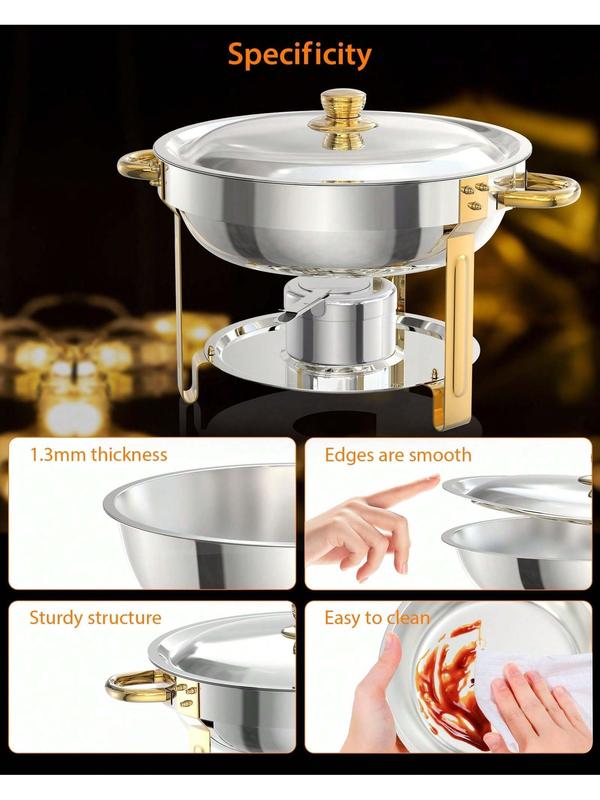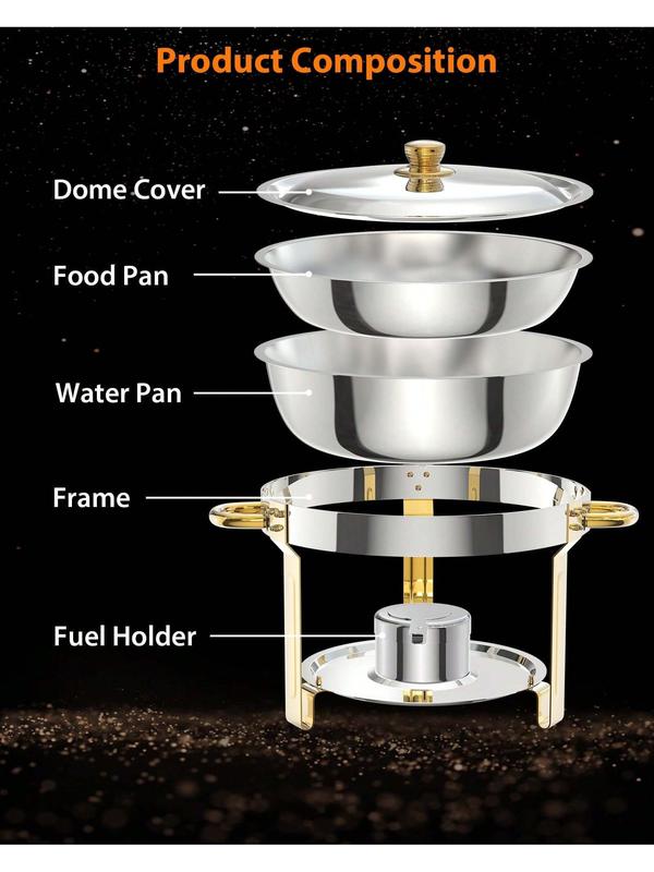 Versatile Serving Option: With a large 5-quart capacity, our chafing dish set is perfect for various occasions, from small gatherings to large events. Making it ideal for restaurants, buffets, catering, schools, corporate events, parties, hotels, and weddings for professional food presentation.