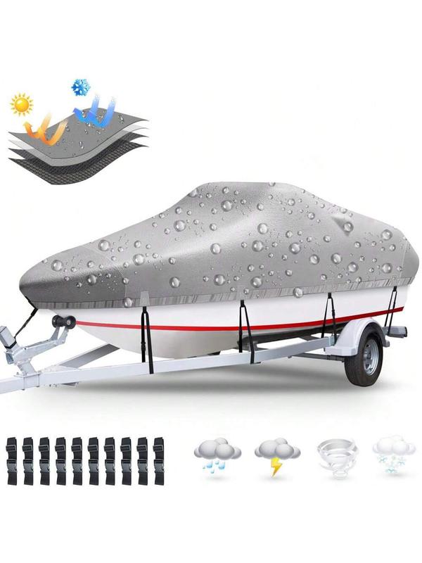 ✔[Sturdy 420D Oxford Fabric]Made from waterproof 420D silver-coated Oxford cloth, this boat cover effectively protects your vessel from scratches. It offers outstanding protection against rain, snow, water, and UV rays, ensuring long-lasting durability.
