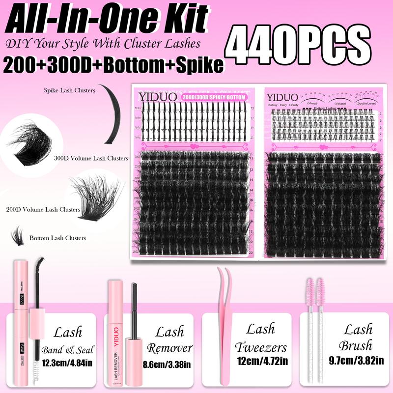 5. 4 Styles Lash Clusters Kit 200D/300D/Bottom/Spike Lashes Clusters Kit 5-20mm Cluster Eyelash Extension Kit 440 Pcs D-Curl With Lash Bond and Seal, Lash Remover,Lash Tweezers,Eyelash Brush DIY at Home Easily Eyelash Set