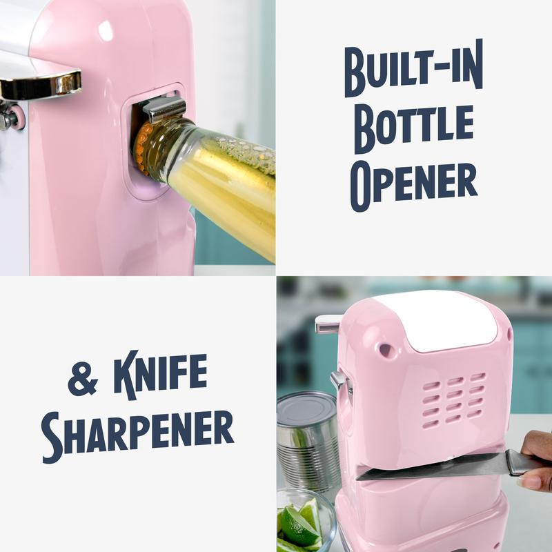 ·KNIFE SHARPENER: Keep your kitchen knives sharp and in long-lasting condition using the knife sharpener located on the back of the can opener.