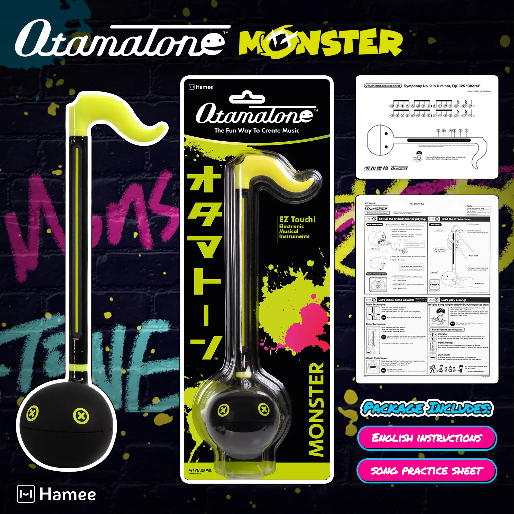 ·QUICK AND EASY SETUP - Requires AAA Batteries × 3 (Batteries NOT included). Simply turn it on, and you're ready to play! Its compact size (Approx. 10.6" / 27cm) makes it perfect for travel and music on the move! Package includes Otamatone, instructions, and a practice sheet to help you learn your first song!
