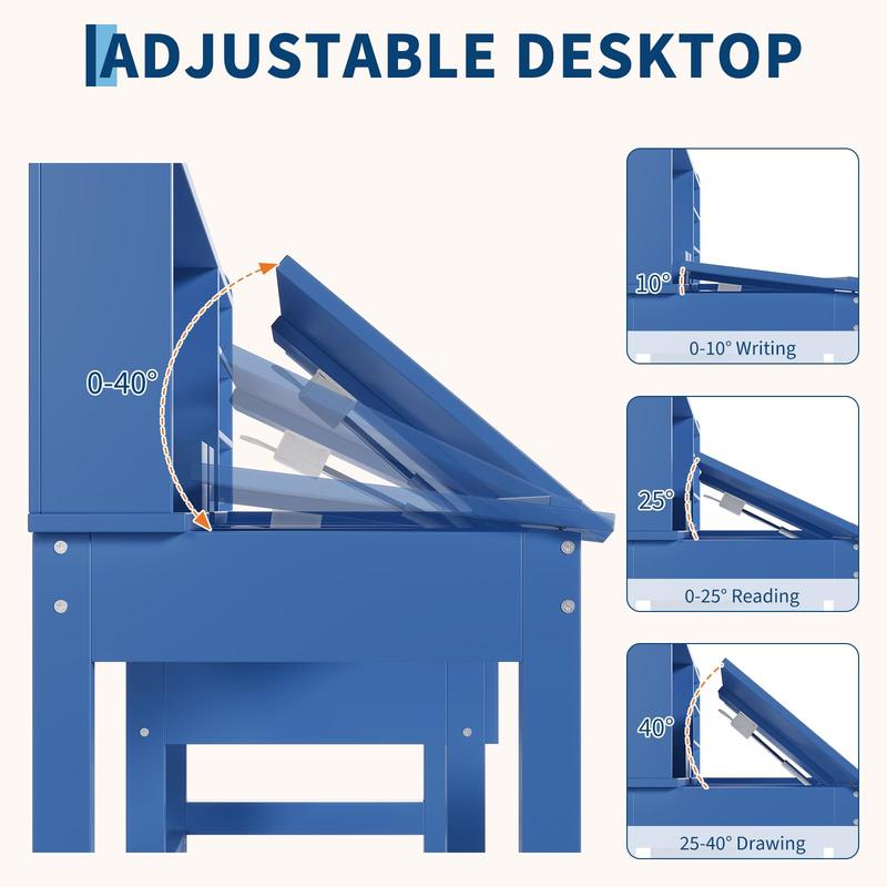 · Adjustable Desktop for Multiple Uses - The left desktop adjusts from 0 to 40 degrees, ideal for reading, writing, and drawing activities. Perfect for placement in study rooms, playrooms, or children's bedrooms.