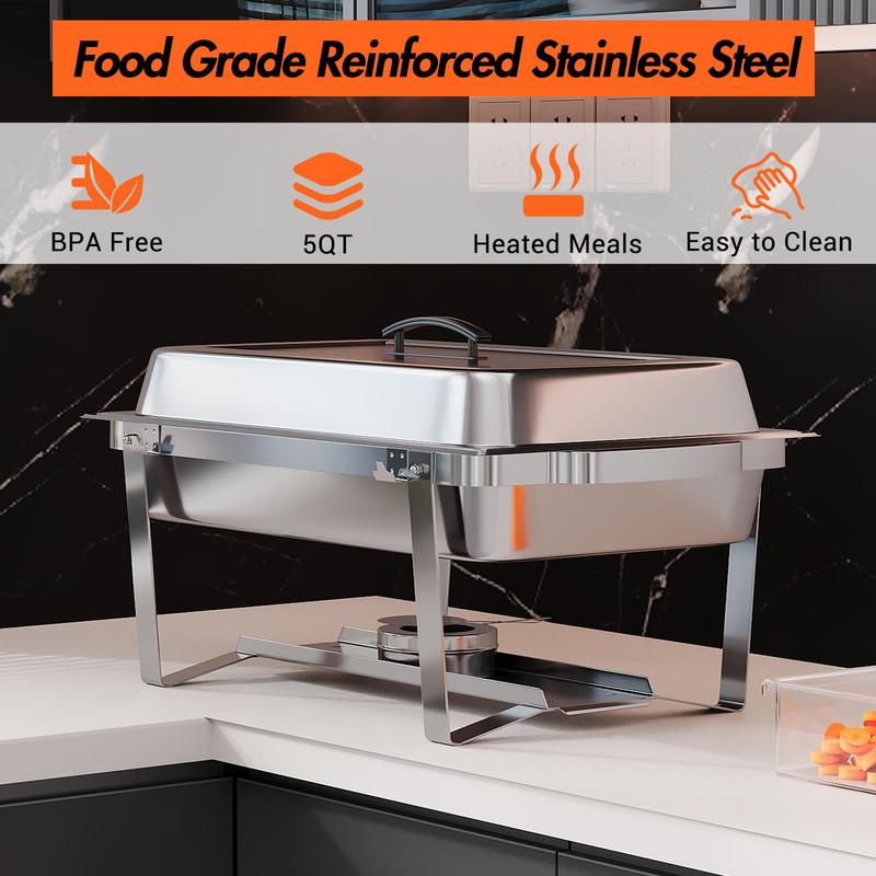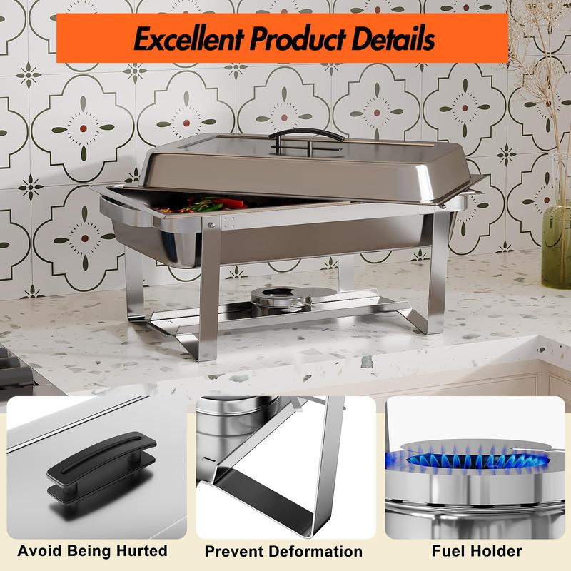 · Warm and Fresh: Our 4 pack stainless steel chafing dishes for buffet enable you to effortlessly maintain the ideal temperatures of all your favorite foods; supported by fuel holders, they heat various dishes while preserving their fresh taste, or you can add ice to keep foods cool
