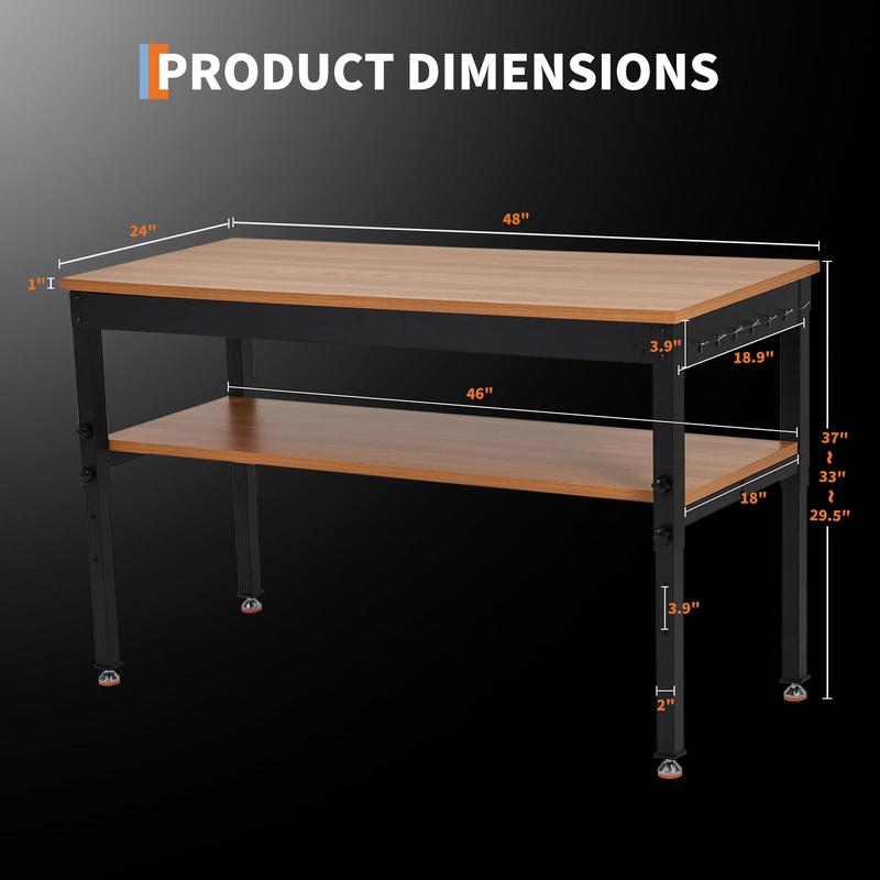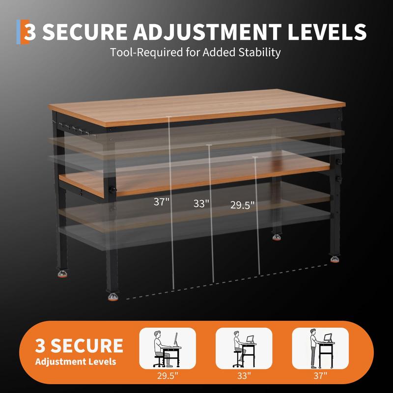 · Adjustable Height with Tool-Free Operation: Tool bench offers 3 height settings ranging from 29.5" to 33" & 37", adjustable with smooth 360° tool-free knobs for quick transitions between sitting and standing. Adapt to different floor types to maintain stability.