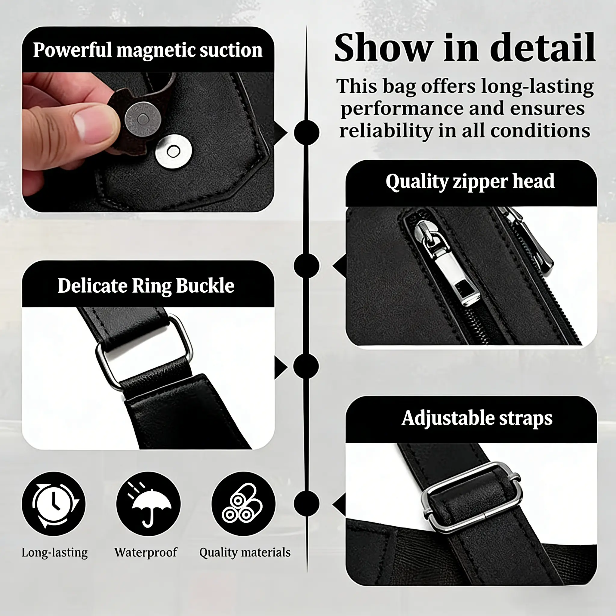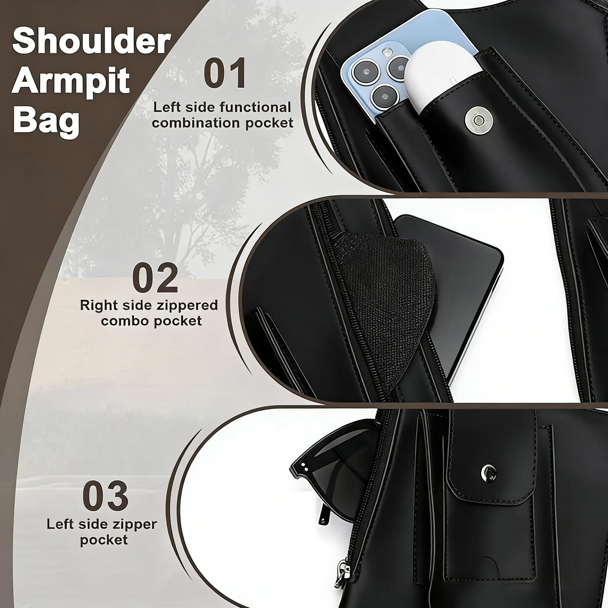 ·Features: Adjustable underarm backpack, double shoulder straps, multi-pocket design, anti-theft