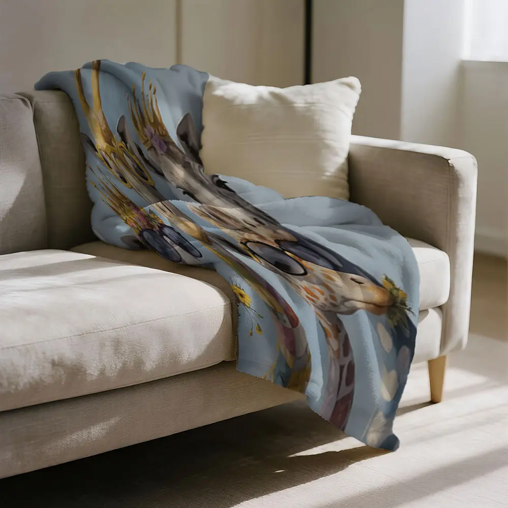 Passionate Lily Giraffe Blanket - Soft Flannel Giraffe Pattern with Crown and Stylish Glasses, Thick Fleece Blanket, Bedroom Throw, Couple's Blanket, Extra Large Leisure Blanket, Living Room Blank