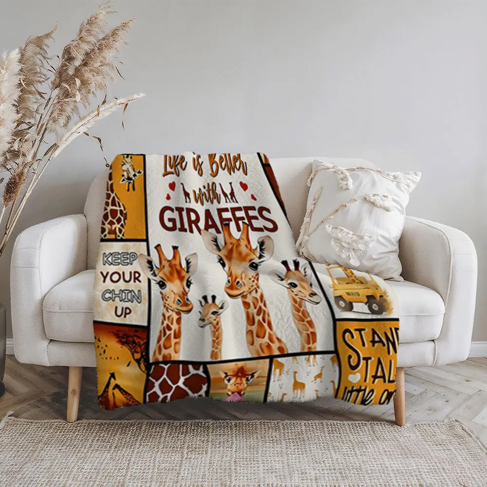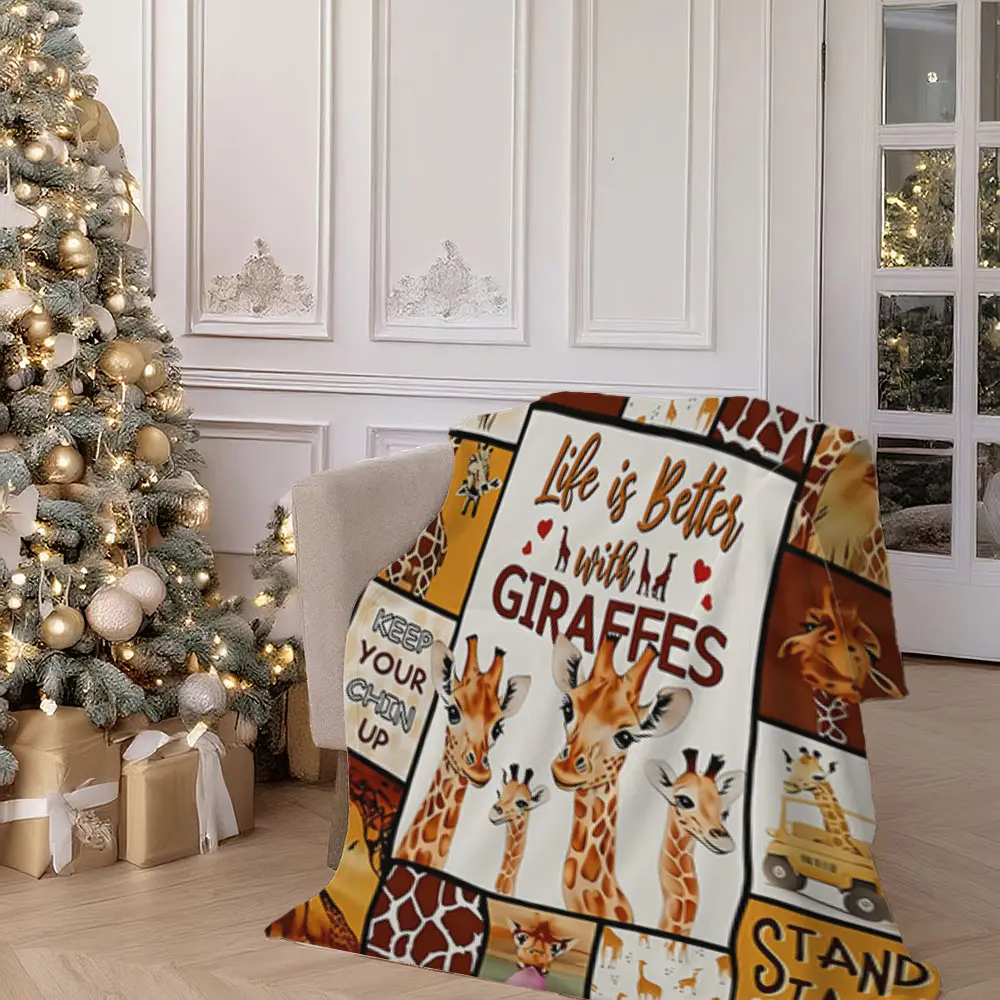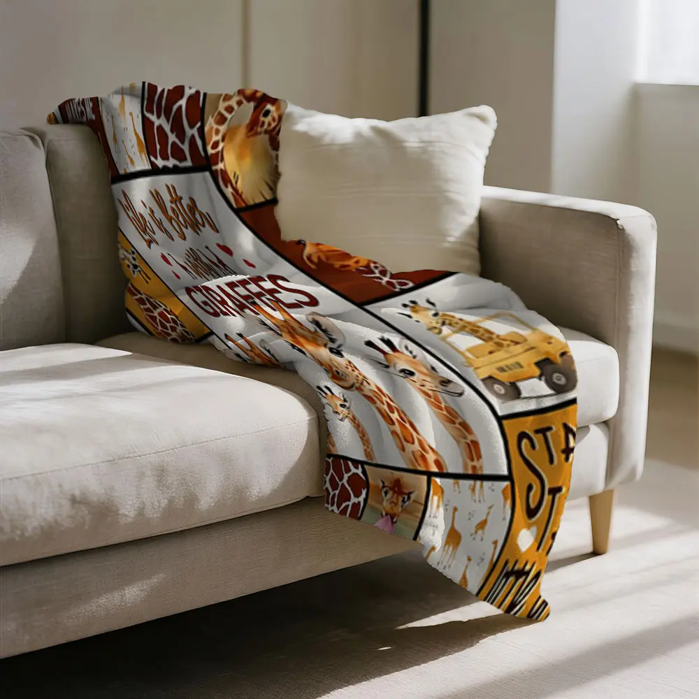 Cute Giraffe Pattern Flannel Blanket, Thick Fleece Blanket, Bedroom Throw, Couple's Blanket, Extra Large Leisure Blanket, Living Room Blanket