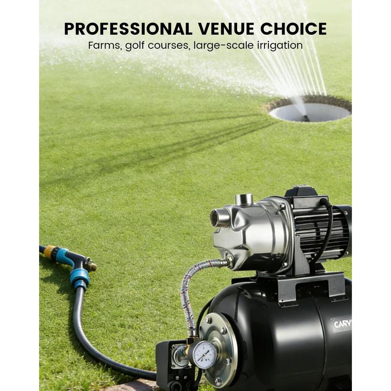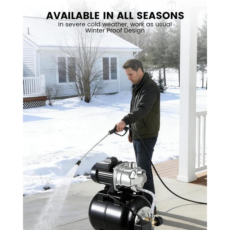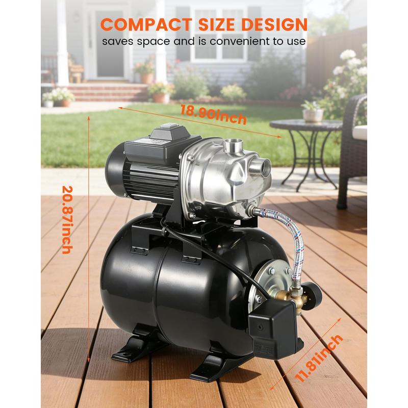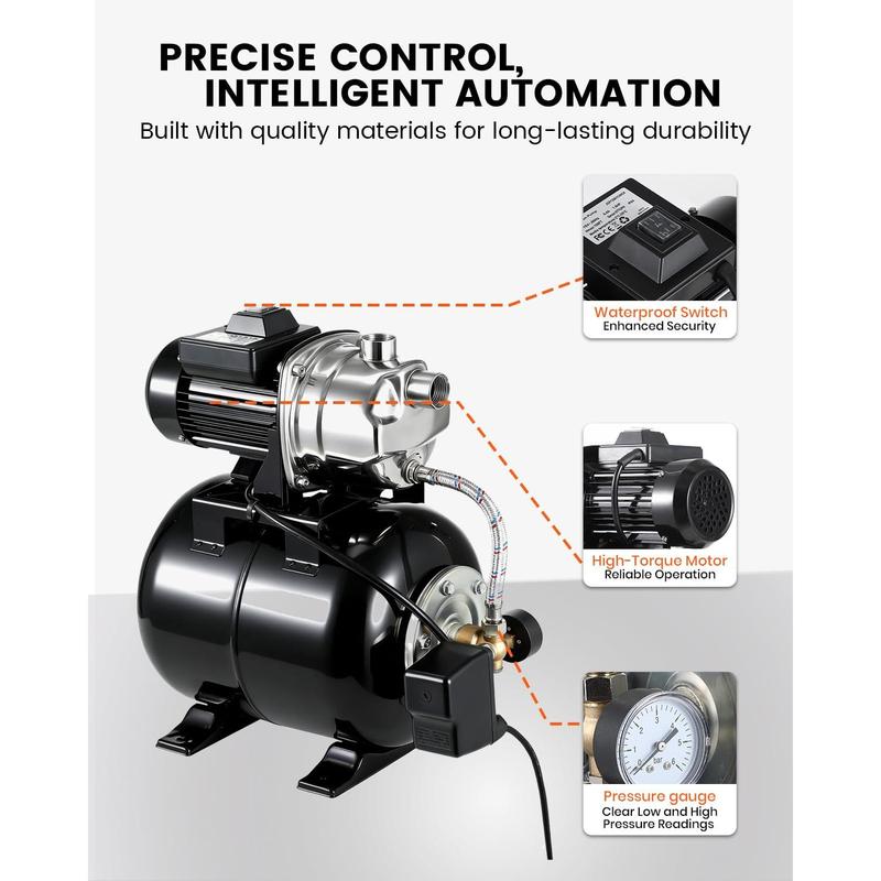 · Automatic Pressure Switch for Hassle-Free Use: The automatic pressure switch and real-time precision gauge mean you never have to adjust settings manually. Your jet pump turns on or off automatically for worry-free operation, ensuring water is always available when you need it