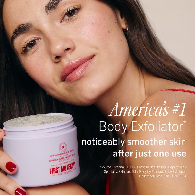 A body scrub with our NEW warm coconut scent that exfoliates away uneven skin texture associated with KP to reveal exceptionally smooth + touchable skin.