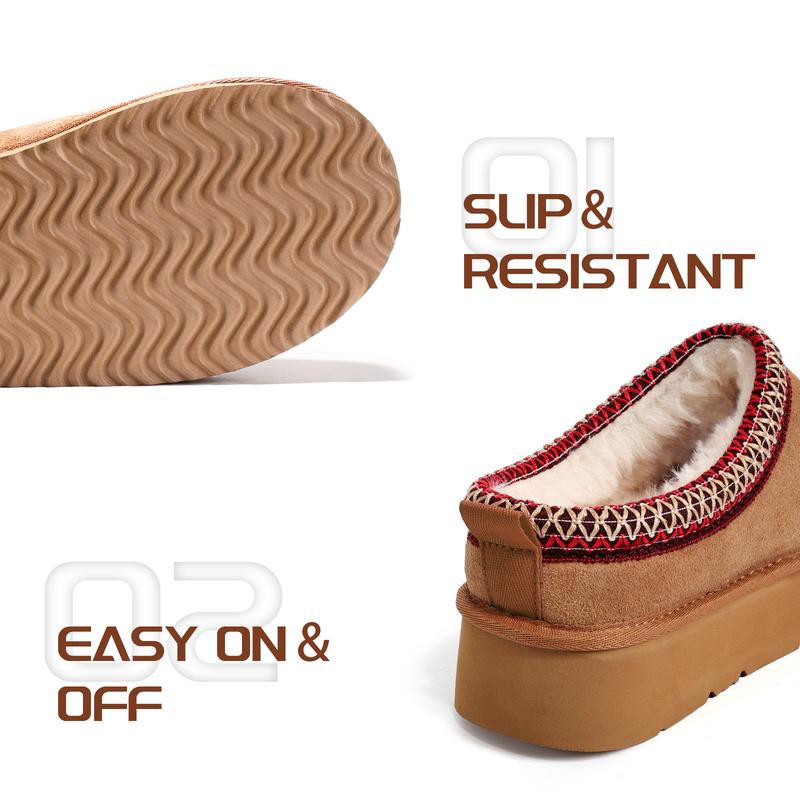 [WARM AND COMFORTABLE]: These winter slippers are lined with plush faux fur to provide your feet with fluffy, plush comfort that will ensure your feet are warm and cozy all fall and winter long.