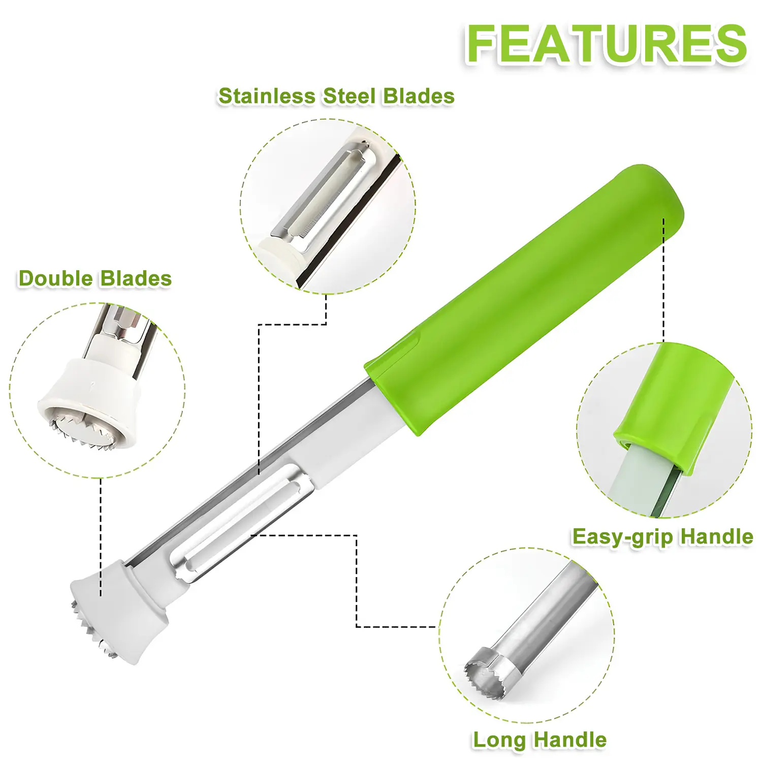 ·Premium Quality: Made with food-grade stainless steel, this corer and peeler is BPA-free, rust-resistant, and built to last. The precision-sharpened blade stays sharp through repeated use, ensuring consistent performance with every fruit or vegetable you handle.