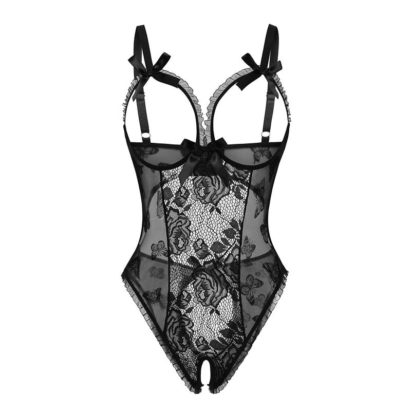 ·Features: This lingerie for women featuring cutout bra with ruffle trim and bow decor, hook and eye closure, delicate floral lace and mesh panel , adjustable shoulder strap help you get the best fit.
