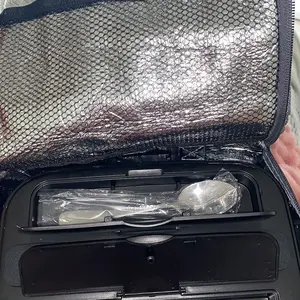 The lunch box holds 1.8 liters, suitable for 1-2 people. It includes a carrying bag for easy transport. The 80W power supply operates on 12V/24V/110V, making it versatile for any location. This modern lunch box combines functionality with a stylish appearance.