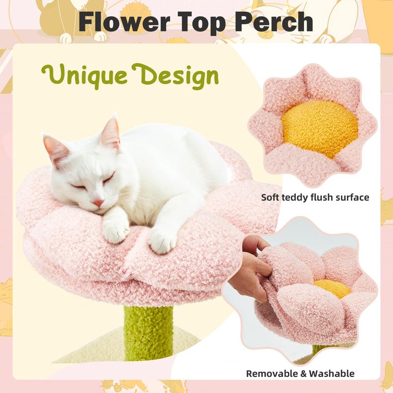Featuring a charming flower-shaped platform, this cute cat tree showcases a unique and eye-catching design. The support columns resemble blossoming flowers, adding a delightful decorative touch while creating a stylish and functional playground for your cat—from playtime to relaxation.