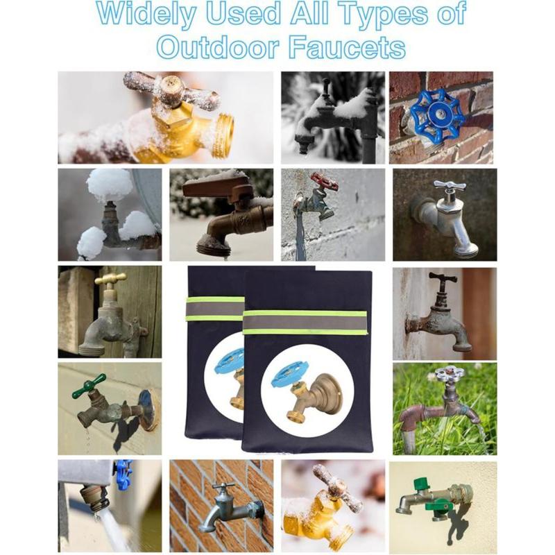 2 Pack Outdoor Faucet Covers for Winter Upgrade Max Size ️- Dimensions: 8.3" H x 6.7" W- Upgrade: Increases by 2-3 inches for a versatile fit over any standard outdoor faucet- Compatibility: Suitable for exterior faucets, hose bibs, water taps, garden spigots, and water pipes Super Freeze-Resistant & Waterproof ️- Material: Dual-side 420D Oxford cloth- Insulation: Industrial-grade insulation cotton- Performance: Waterproof and insulation, keeps the faucet dry against severe winters, freezing, rain, and snow Eliminates Expensive Repairs ️- Protection: Extends protection to the wall, preventing outdoor faucet, spigot, and water pipe freeze cracks- Cost Savings: Reduces the need for expensive repairs Flexible Hook-And-Loop Straps System - Installation: Self-adhesive tape for easy installation and removal- Material: Flexible material for use in tight areas- Effortless Use: Much easier to use than foam covers or string tie styles 100% Satisfaction - Pack: 2 Pack (8.3" H x 6.7" W)- Freeze Protection: Provides effective freeze protection for your outdoor faucets Conclusion These outdoor faucet covers are the first choice for winter freeze protection, offering versatile fit, super freeze-resistance, waterproof performance, and easy installation. Save money and time with these covers.