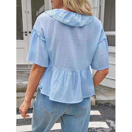 Comfortable Fabric: Made from high-quality cotton fabric, these eyelet summer casual shirts are lightweight and breathable, ensuring comfort throughout your day. The short sleeves and flowy silhouette make them an ideal choice for warm spring and fall outings