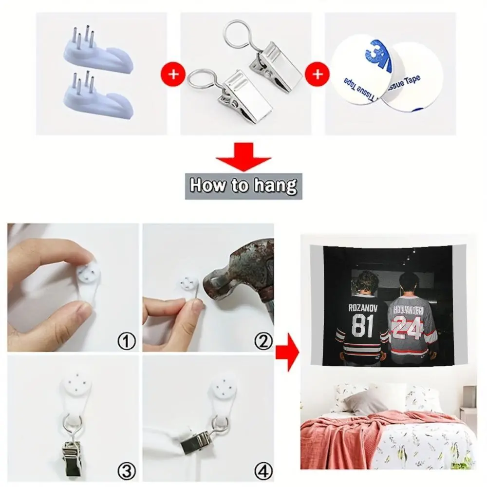 ✨Product Overview:This premium polyester tapestry features Ilya Rozanov and Shane Hollander art print.Perfect for college dorms and man caves, it measures 3x5ft.The tapestry includes 4 grommets for easy hanging.Ideal for solid color decorative decoration, it boasts a modern stripe design.🏫