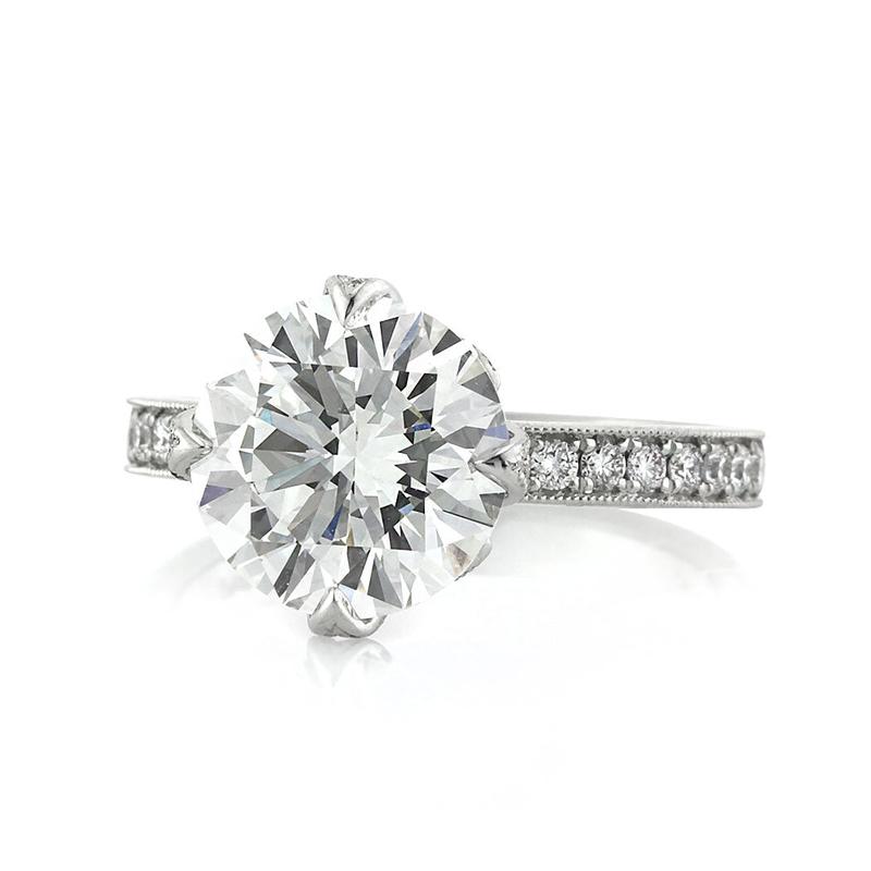 A modern classic, this 4.03ct Lab-grown Round Brilliant Cut Diamond Engagement Ring is a refined expression of true elegance. The expertly cut 3.43ct lab-grown diamond center is graded Triple Excellent and dazzles with exceptional fire and brilliance—an exquisite example of ethical luxury. Set in platinum, the timeless silhouette highlights the stone’s brilliance with refined simplicity. This ring is a striking symbol of lasting love and thoughtful craftsmanship.