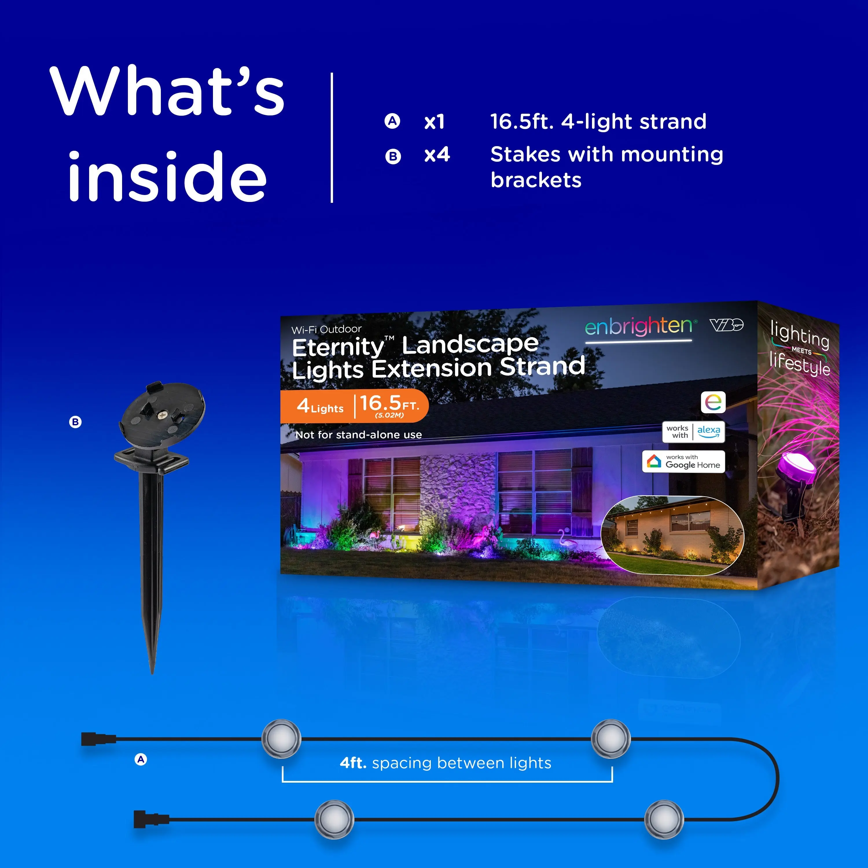 For added flexibility, connect multiple strands or extensions up to 150ft. to create a fully personalized layout. For your lifestyle, for forever—Enbrighten VIBE Eternity Landscape Lights.