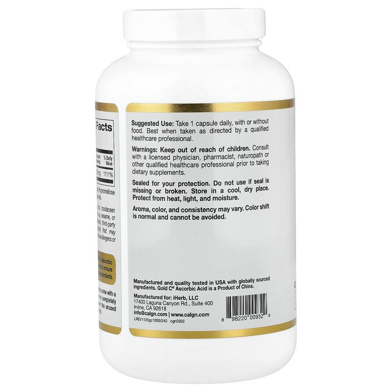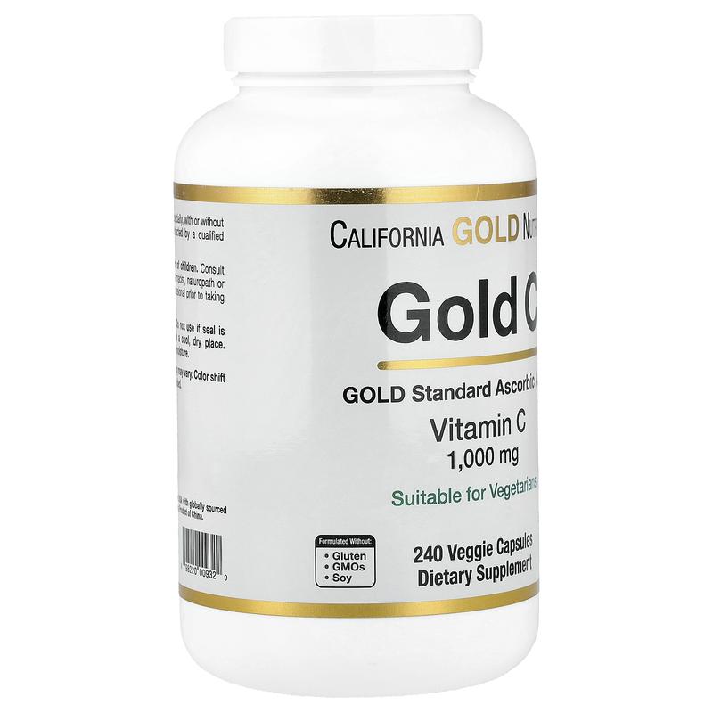 California Gold Nutrition Gold C®, USP Grade Vitamin C, 1,000 mg, 240 Veggie Capsules
