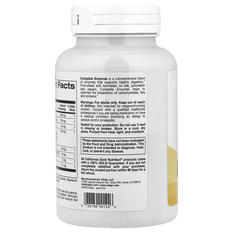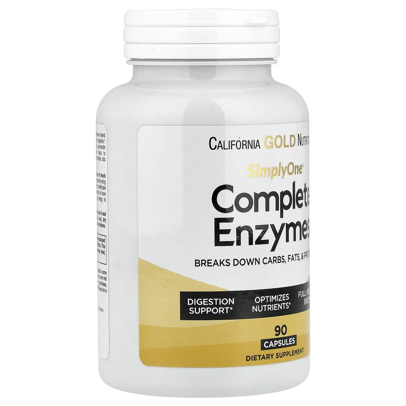 California Gold Nutrition SimplyOne®, Complete Enzymes with Betaine HCl, Ox Bile Extract, Full-Spectrum Enzymes, and Bromelain, 90 Capsules