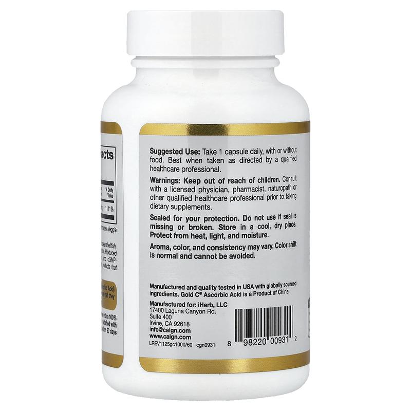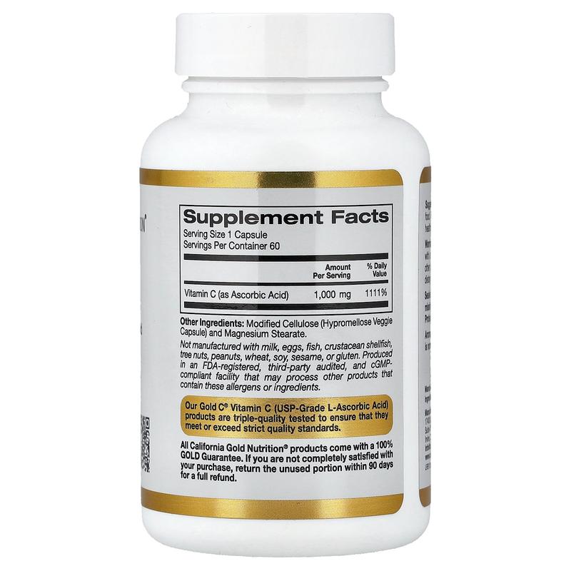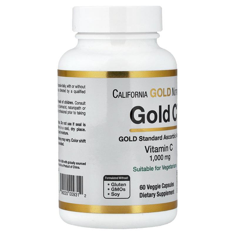 California Gold Nutrition Gold C®, USP Grade Vitamin C, 1,000 mg, 60 Veggie Capsules