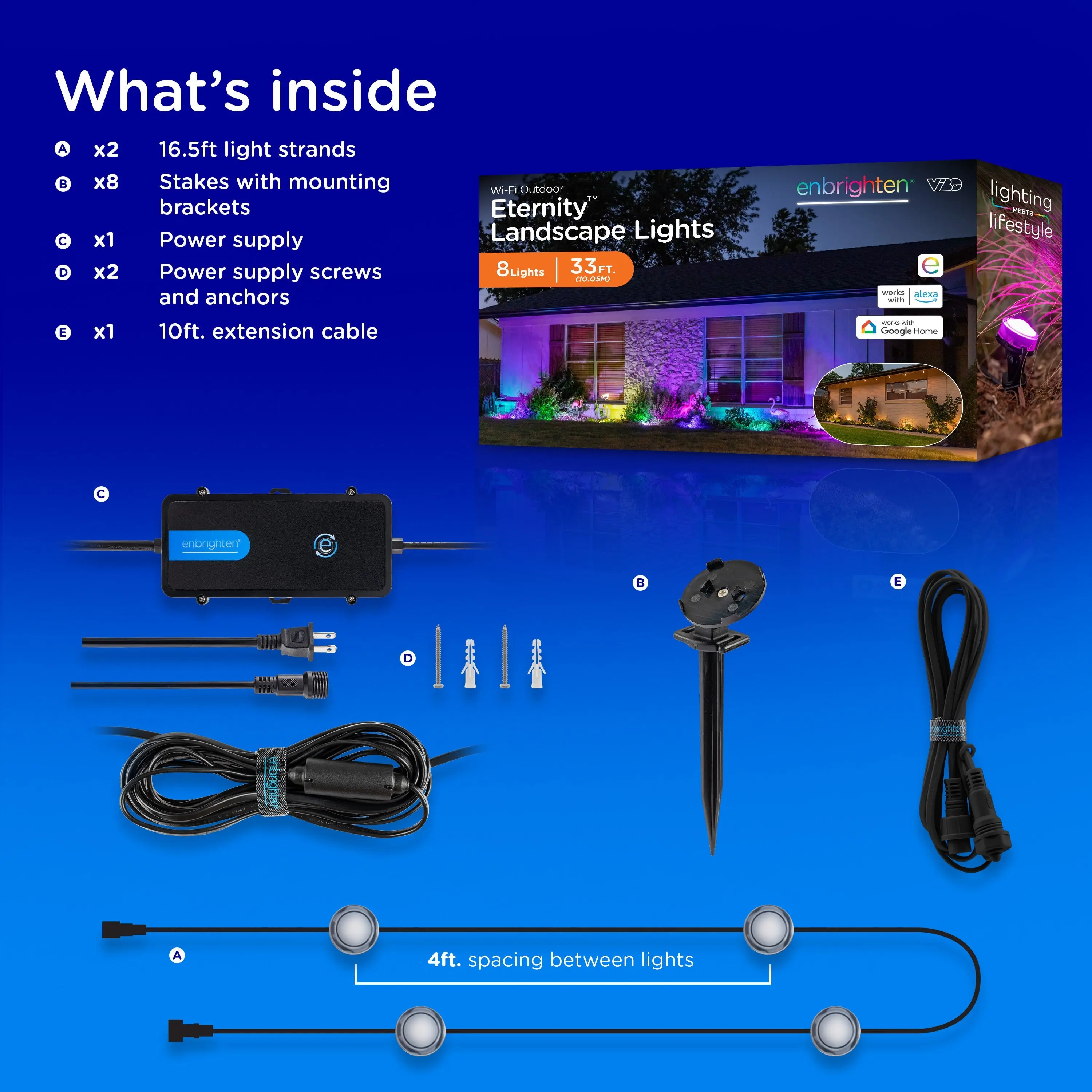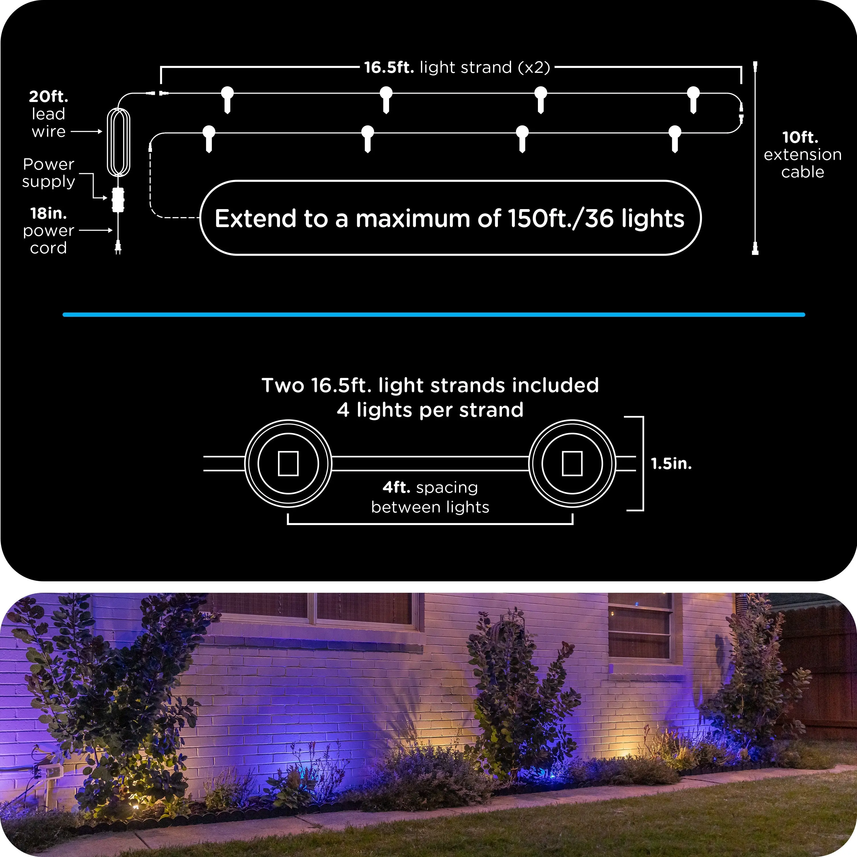 For added flexibility, connect multiple strands or extensions up to 150ft. to create a fully personalized layout. For your lifestyle, for forever—Enbrighten VIBE Eternity Landscape Lights.