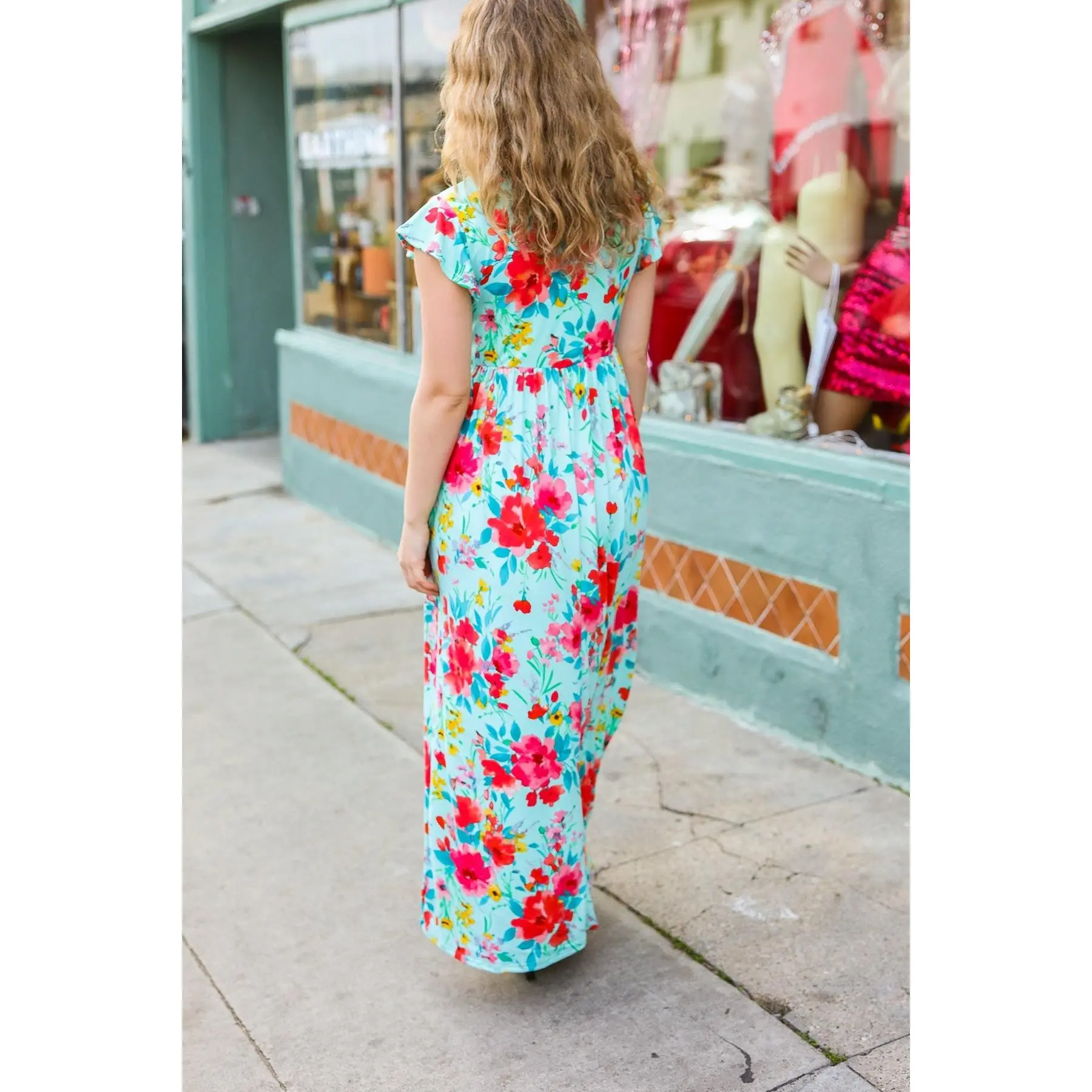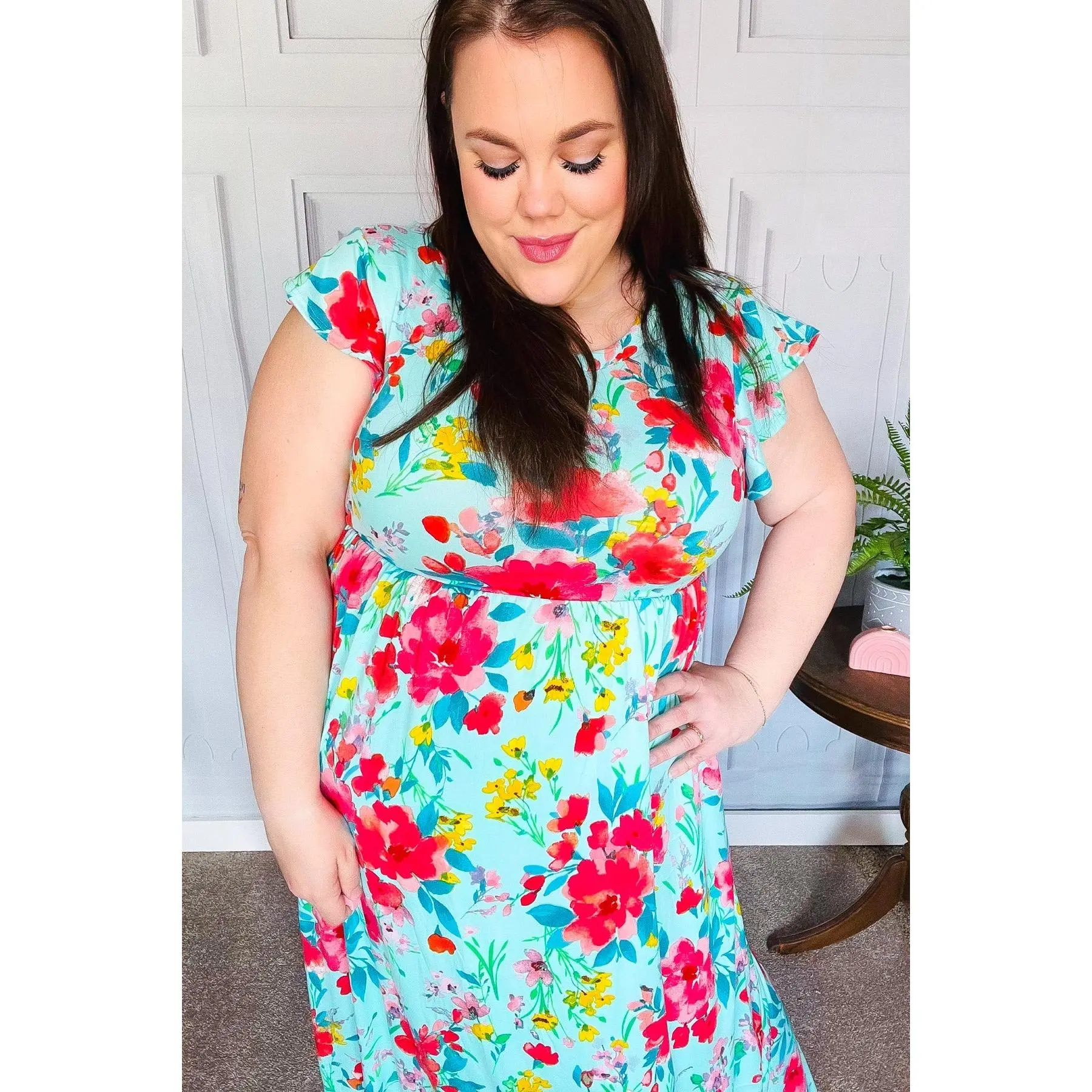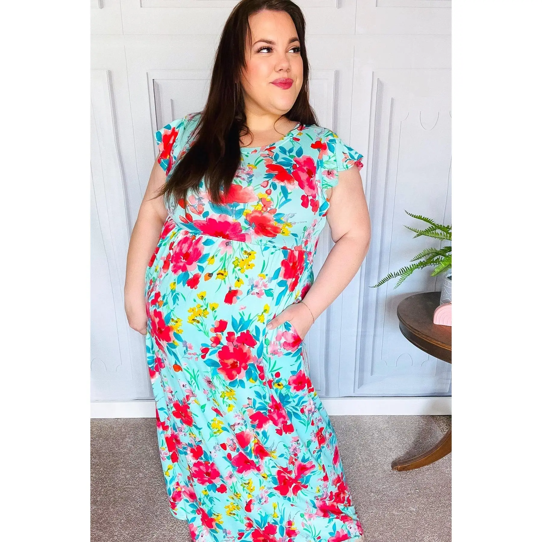 Step into spring with casual elegance with this floral flutter sleeve maxi dress designed with a round neck, an elastic waist and side pockets. With a silky, flattering drape, layer with a denim jacket or wear solo for a striking look.