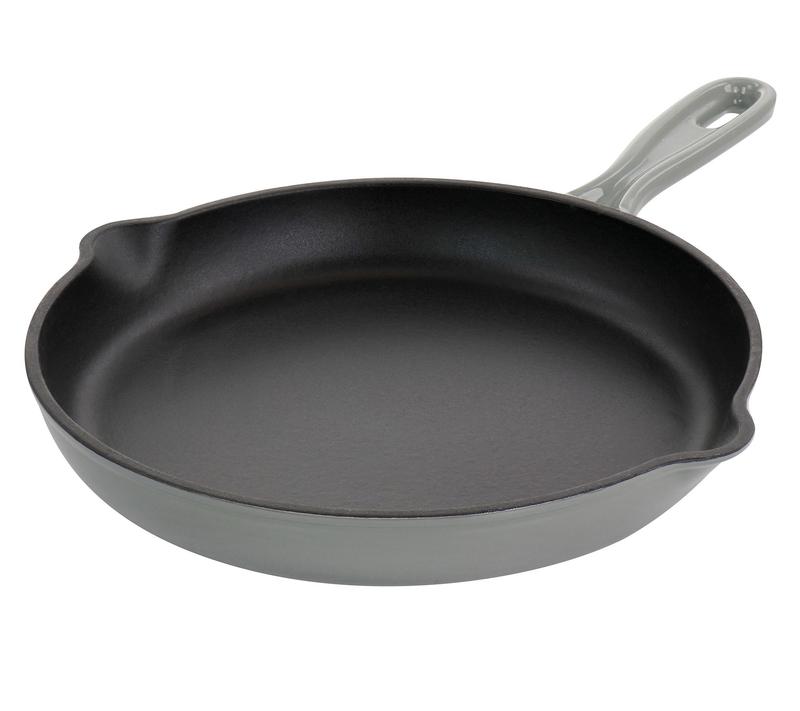 MegaChef 10.25" Enameled Round Cast Iron Skille t in Gray