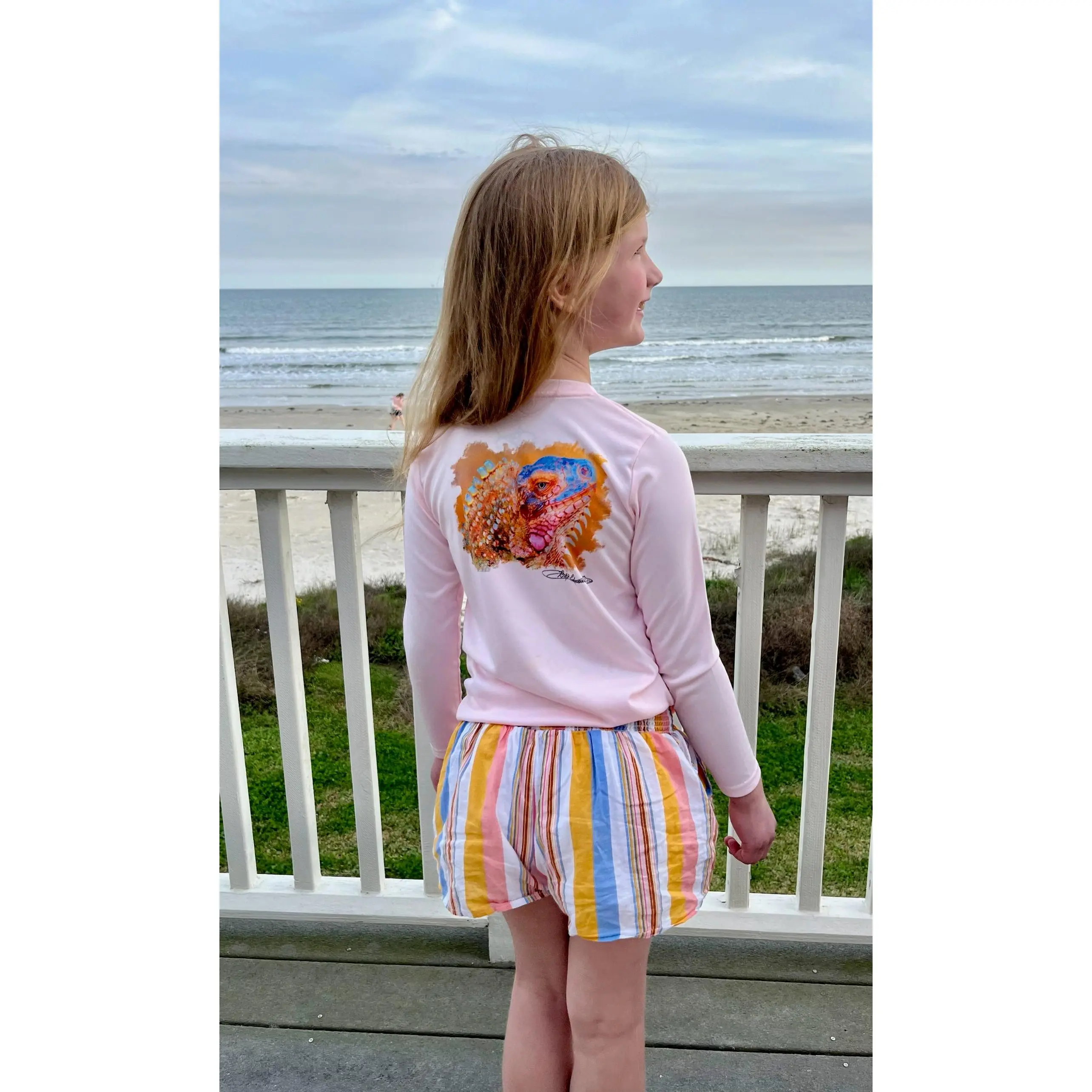 Meet Iguana Lana from the British Virgin Islands, a bold, island inspired design made for kids who love the outdoors. This performance fishing shirt delivers UPF 50+ sun protection for safety, breathable all-day comfort, and features original BeAFish Designs artwork. Built to keep young adventurers cool, protected, and ready for every sunny day outside.