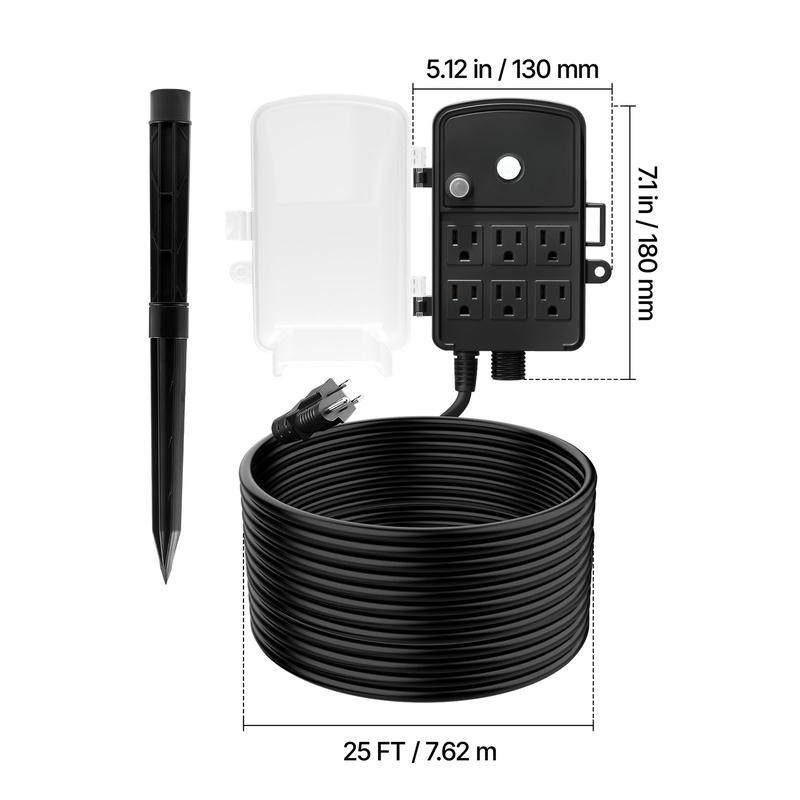 • 25 ft Extension Cord: No more struggling with short cables. The extension cord with power stake gives you the reach you need to power backyard parties, patio lights, garden sprinklers, Christmas lights, and holiday displays with ease