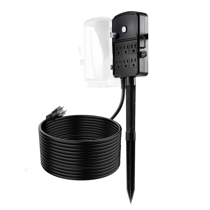 • Six Power Outlets: Turn one outlet into six with this outdoor power stake. It securely handles up to 15A/1875W, so you can run multiple devices at once without constantly plugging and unplugging