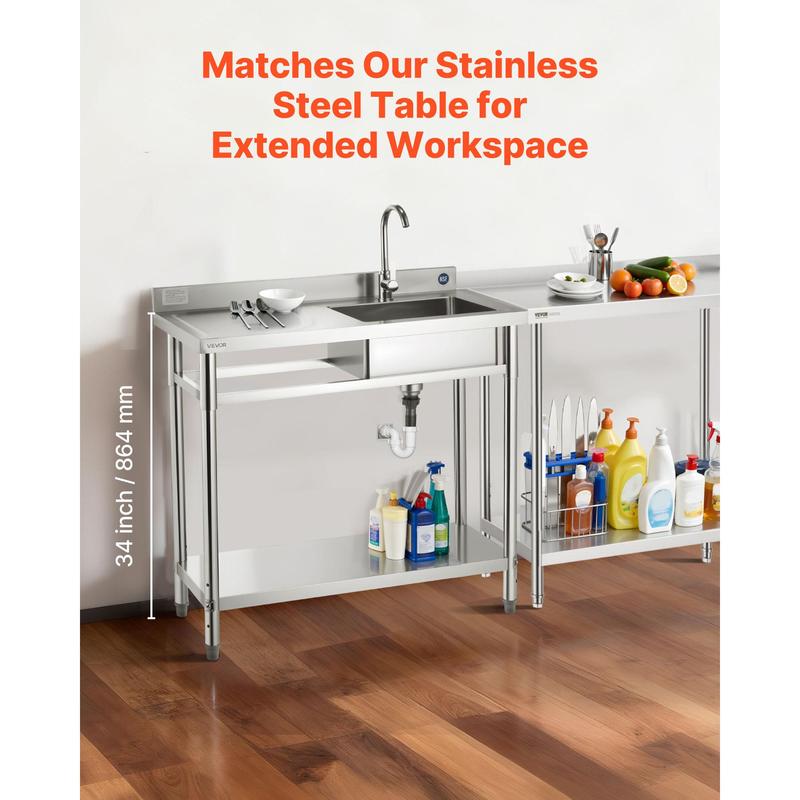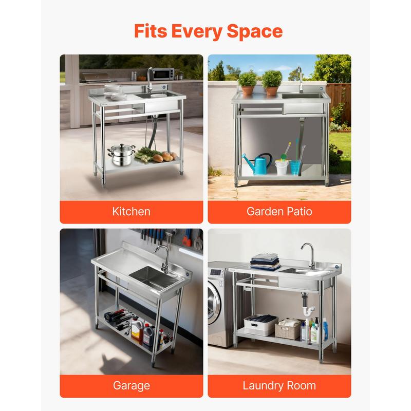 • Versatile Use & Flexible Setup: Ideal for outdoor kitchen, patio, garage, bar, restaurant, or buffet. The commercial sink features adjustable feet ensure balance on uneven ground