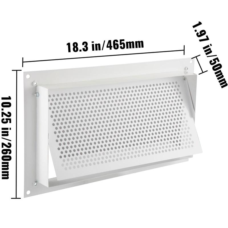 • The back plate and net surface are removable for maintenance. The net surface provides security from unwanted critters. The vent ensures proper ventilation. Dimensions: 16 x 8" / 406.4 x 203.2 mm. Item dimensions: 18.3 x 10.23 x 1.97" / 465 x 260 x 50 mm. 🏠
