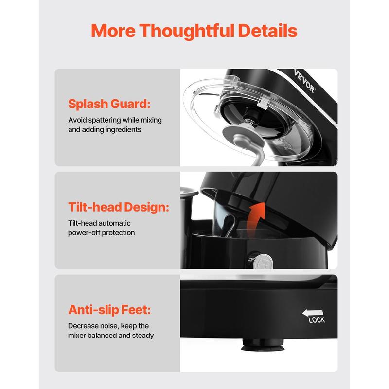 • Quick Cleanup & Easy Disassembly: Thanks to the lever adjustment for tilting the head, our food mixer allows for easy attachment and detachment of mixing tools. Simply twist the bowl and then you can detach it. All food-contact components, including the bowl, hook, and rod, are made of food-grade stainless steel, ensuring durability, rust resistance, and easy cleaning.