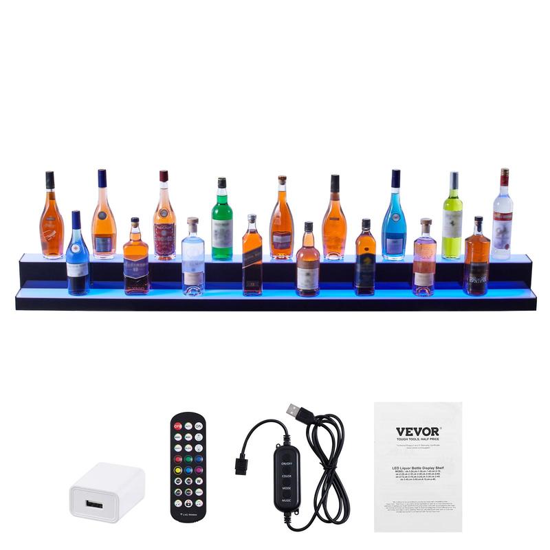 VEVOR LED Lighted Liquor Bottle Display,  , 2 Tiers 72 Inch Commercial Illuminated Home Bar Shelf, 2 Steps Whiskey Rack Stand, Acrylic Drink Shelves with RF Remote & App Control, and Multicolor lighting