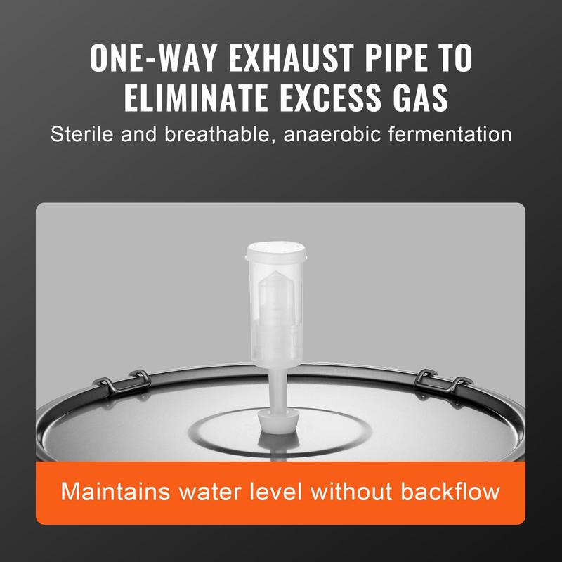 • Sterile and Breathable: The top of the lid can be fitted with an exhaust pipe, which can be easily installed in seconds. One-way exhaust allows bubbles in the barrel to be released, and injecting a small amount of water prevents backflow, achieving sterile and breathable, oxygen-free fermentation.