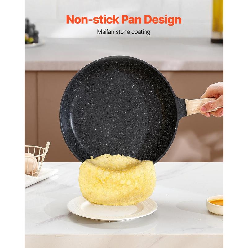 • Non-stick Coating: Made with Maifan stone, this cookware ensures easy food release and effortless cleaning. The interior withstands temperatures up to 380°C. It does not include lead, cadmium, or PFOA. Cook with less oil for a healthier meal.