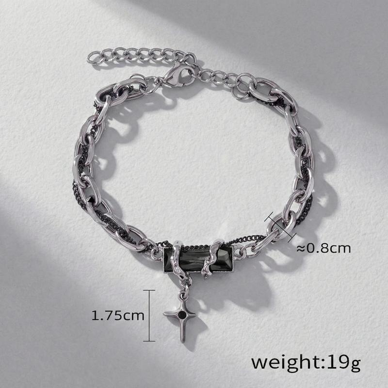Punk Style Cross Bracelet, Cyber Y2K Silver Tone Chain with Black Stone - Vintage Aesthetic Jewelry for Women Men
