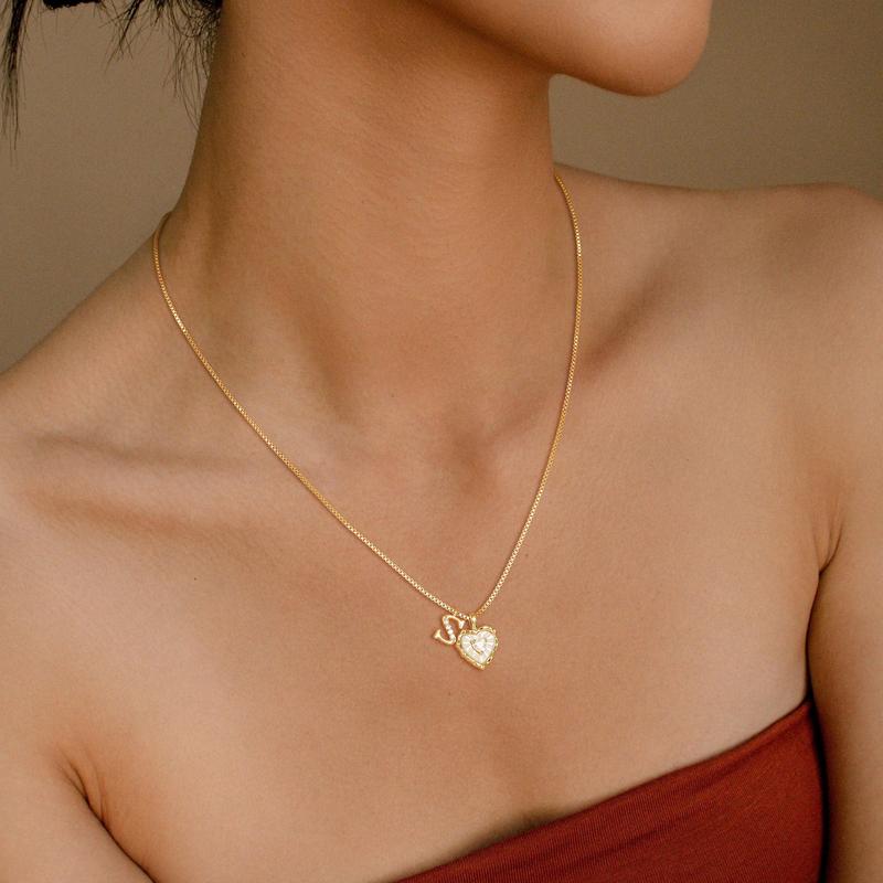 ·This Tewiky necklace features a 14K gold-plated letter Zircon heart shape pendant.
