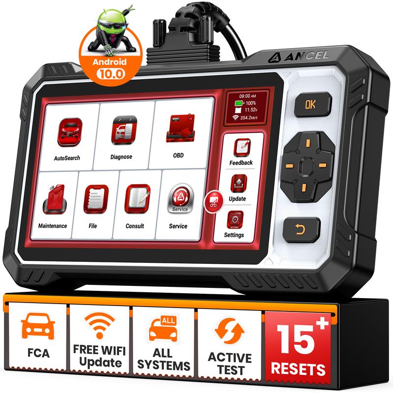 The ANCEL FX6100 combines full-system diagnostics with 15+ essential maintenance functions, offering professional-grade capability through a 6.2-inch touchscreen, Android 8.1 system, and 2GB+32GB memory configuration. It covers 100+ car brands and 100,000+ models, supports CAN-FD and AutoAuth for 2018+ FCA, and delivers fast, stable performance powered by a quad-core processor. With lifetime free Wi-Fi updates, multilingual support in 20+ languages, and both touchscreen and physical key operation, the FX6100 ensures efficient, accurate, and long-term diagnostic reliability for both technicians and DIY users.
