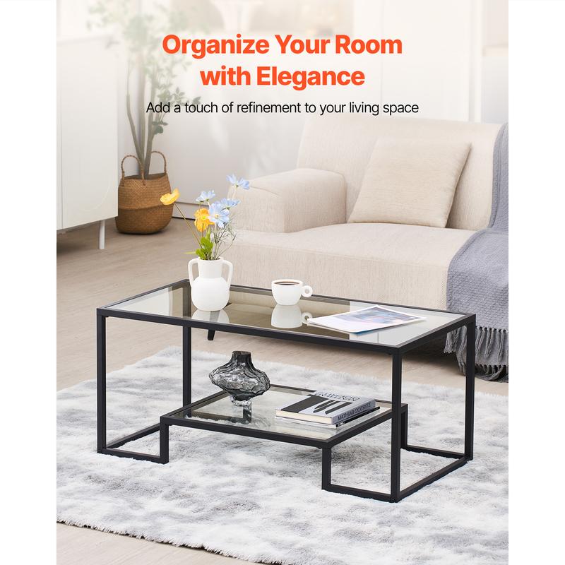 • Easy to Install & Clean: Follow the clear instructions to quickly assemble. Featuring a tempered glass tabletop, our glass center table is waterproof for lasting use. Stains (soy sauce, coffee stains) can be wiped off easily for a bright, clean surface