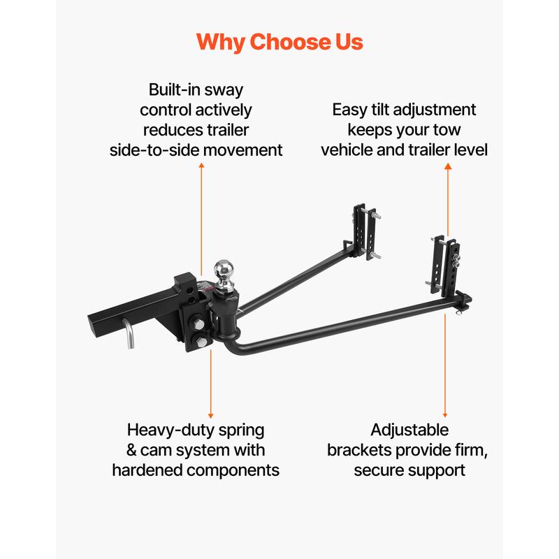 • Optimized Weight Distribution: The weight distributing hitches kit redistributes tongue weight across the tow vehicle and trailer to level the rig. This balance can improve steering and braking and make highway and back-road towing feel more controlled