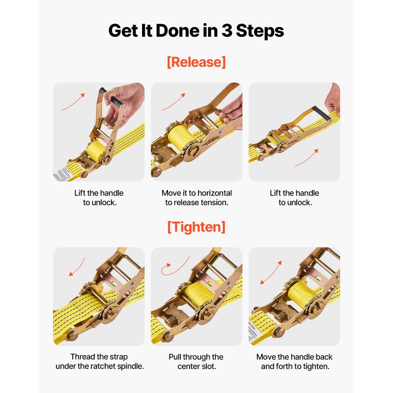 • Rust-Resistant Durability: The zinc-plated ratchet and hardware pair with abrasion-resistant polyester webbing. The set of cargo tie-down strap stands up to sun, rain, and road grime for reliable, long-lasting tie-downs
