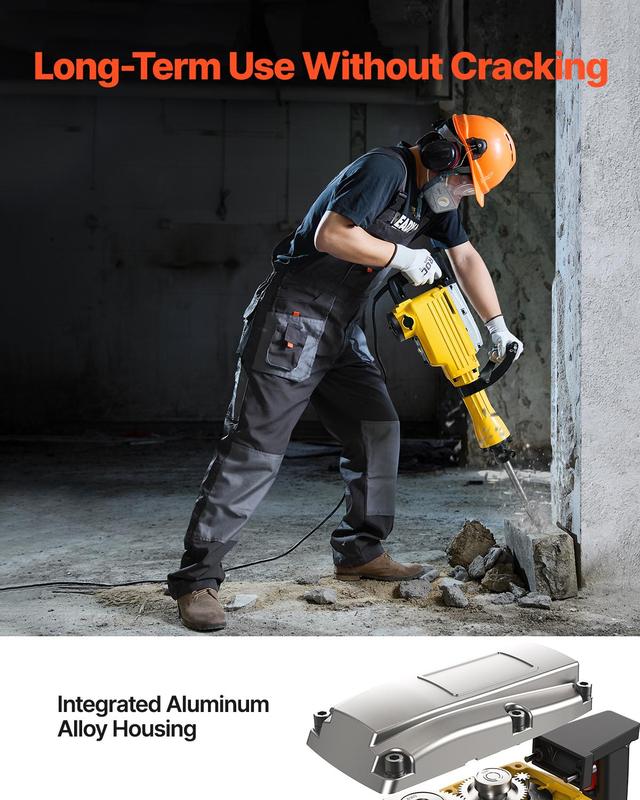 • Superior Performance & Top Quality: A 2200W industrial motor with 66J impact energy is designed to complete concrete and metalworking projects quickly and precisely. It is intended for professionals. This electric jack hammer adopts heavy-duty aluminum construction, is highly durable, and is corrosion resistance for long-term use.