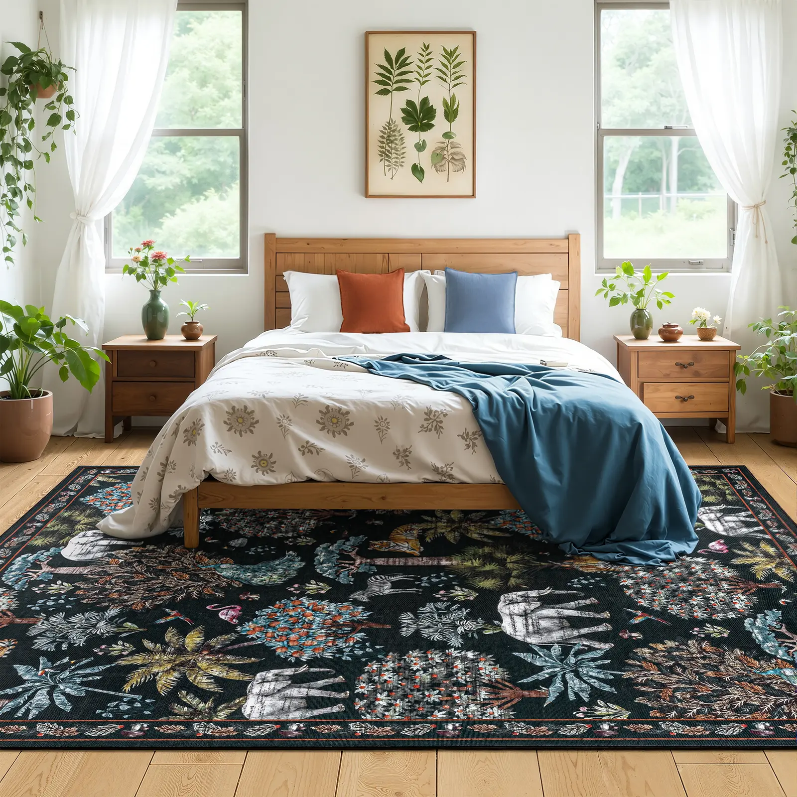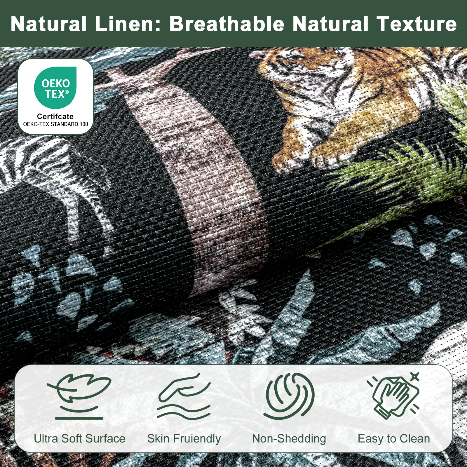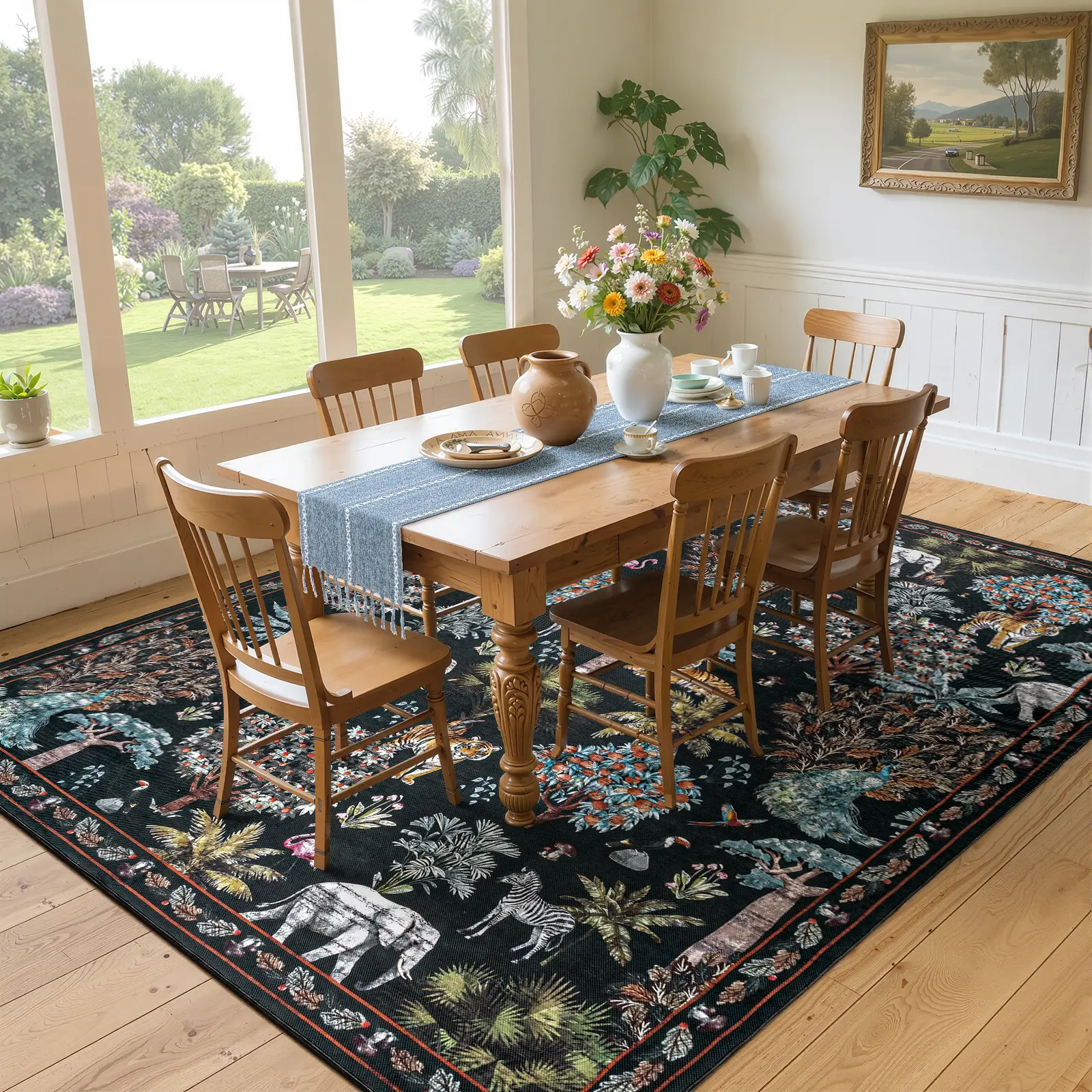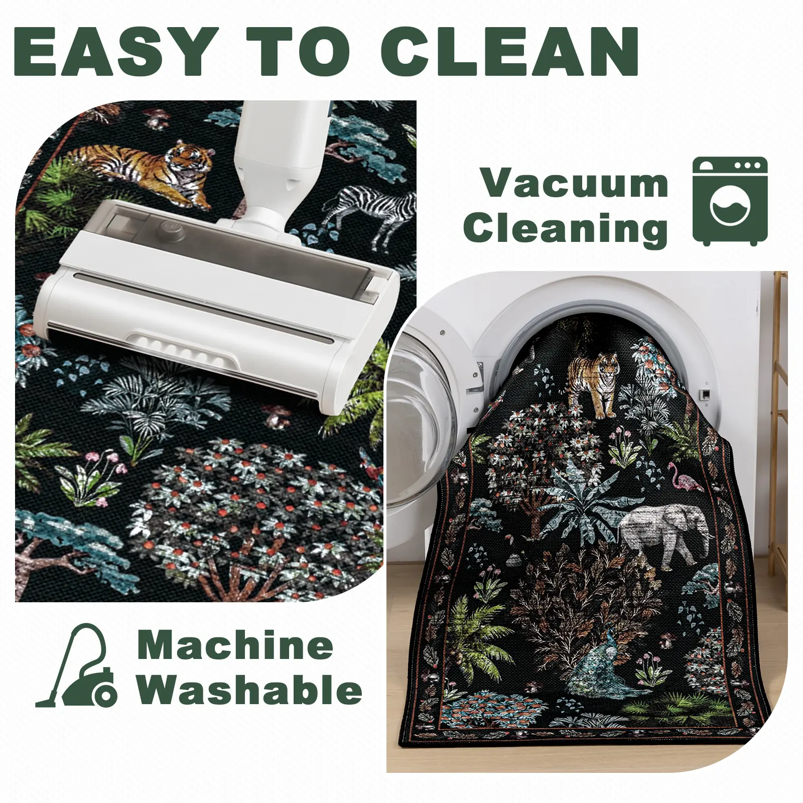 No-Slip and Sturdy: The living room rug 8x10 is made of TPR no-slip rubber backing, which can effectively keep the jungle rug in a stable position and avoid slipping. These washable rugs are suitable for living room, bedroom, dining room, playroom and nursery room.