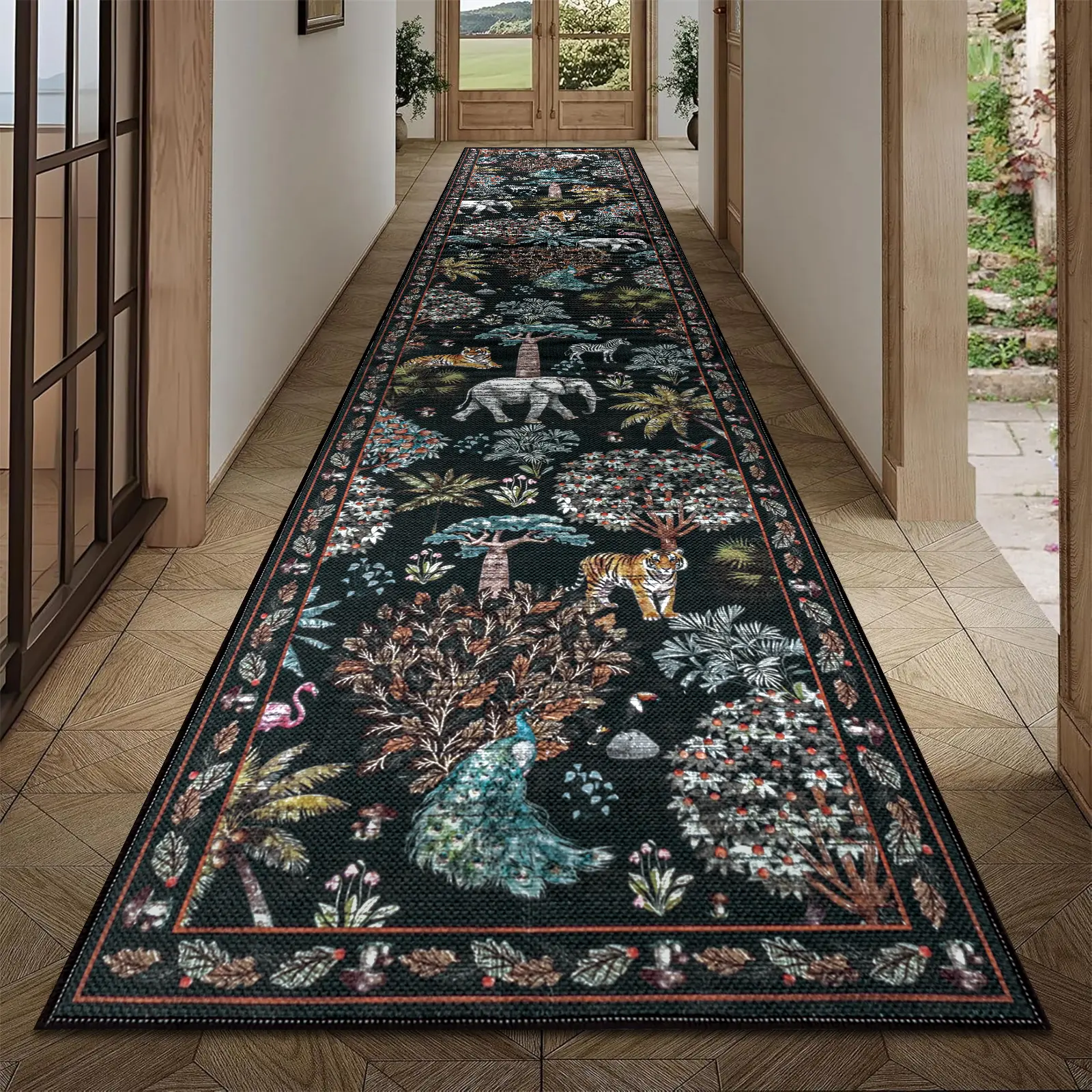 Unique Jungle Print Design: Elevate your style with our unique jungle print design, meticulously crafted to stand out. This 8x10 area rug vibrant animal decor pattern combines forest and botanical that evoke joy and positivity, making it the perfect choice for those who want to express their individuality.