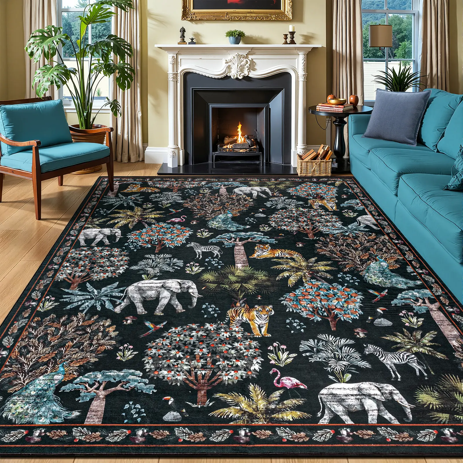 Ultra-Soft and Comfortable: Made from skin-friendly faux wool, the 8 x 10 rug feels like walking on clouds, keeping your feet cozy and protected from cold floors. The vibrant jungle and animal design adds a touch of warmth and relaxation to your home.