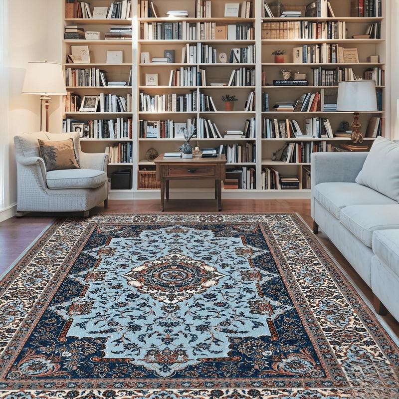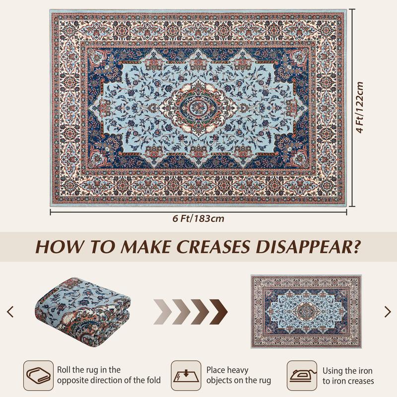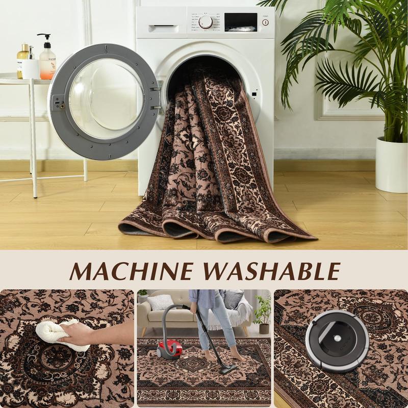 Living Room, Bedroom, Kitchen, Dining Room. The Boho Vintage Floral Faux Cashmere Rug is a versatile and safe area rug for various living spaces. It is machine washable, non-slip, and suitable for high foot traffic areas. It provides a comfortable and safe environment for families with children and pets.