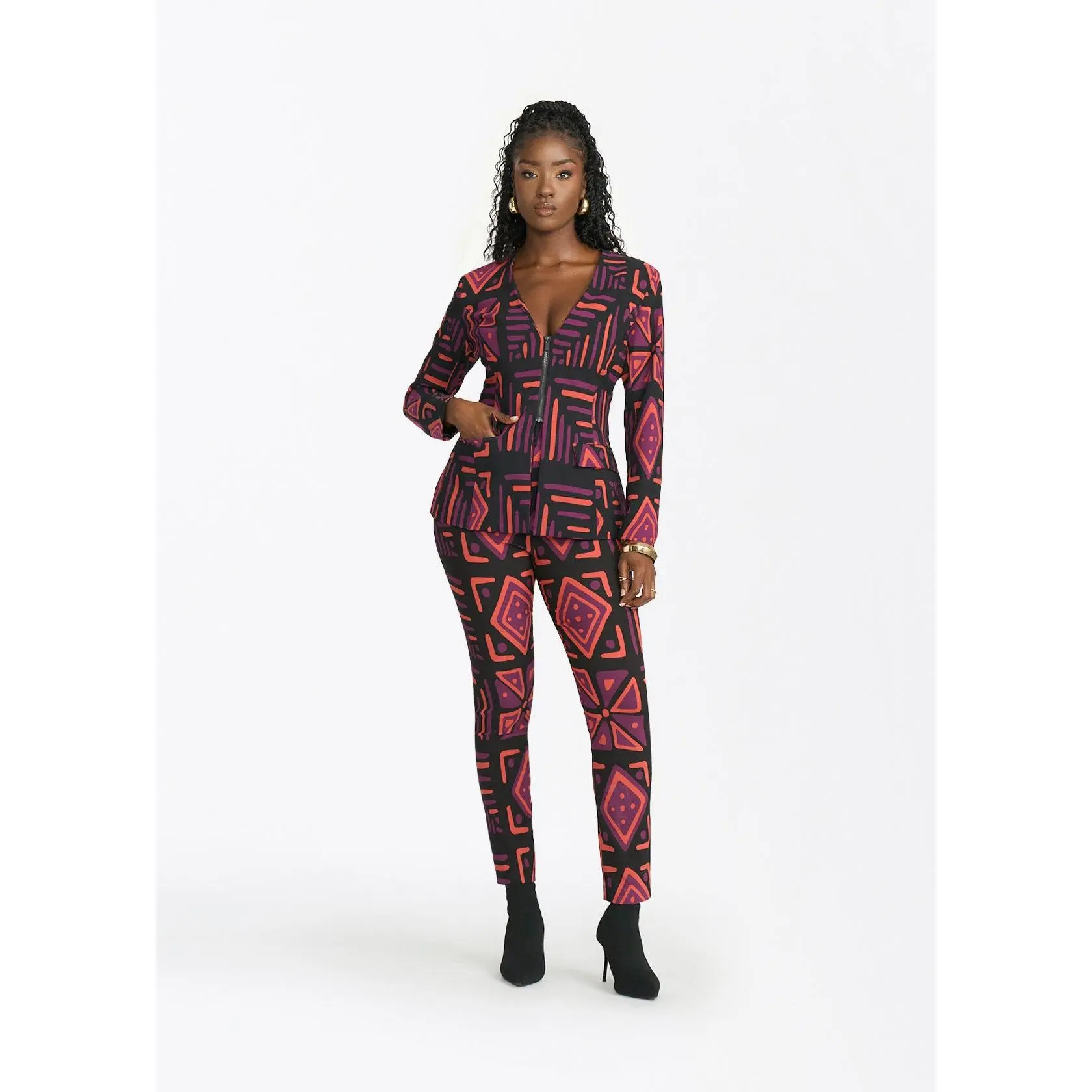 The classy Fafa blazer is the perfect outfit addition that's sure to make a statement. Wear with the matching Talia pants in Black Peach Tribal or wear with jeans for a more casual look.